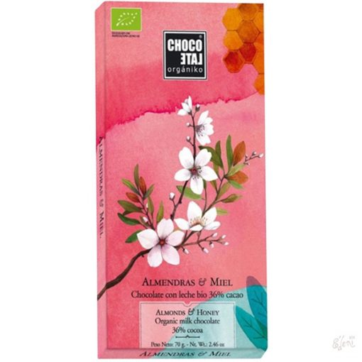 Összetevők: Bio nádcukor, bio kakaóvaj, bio teljes tejpor, bio kakaómassza, bio mandula, bio méz, emulgeálószer: bio szójalecitin.